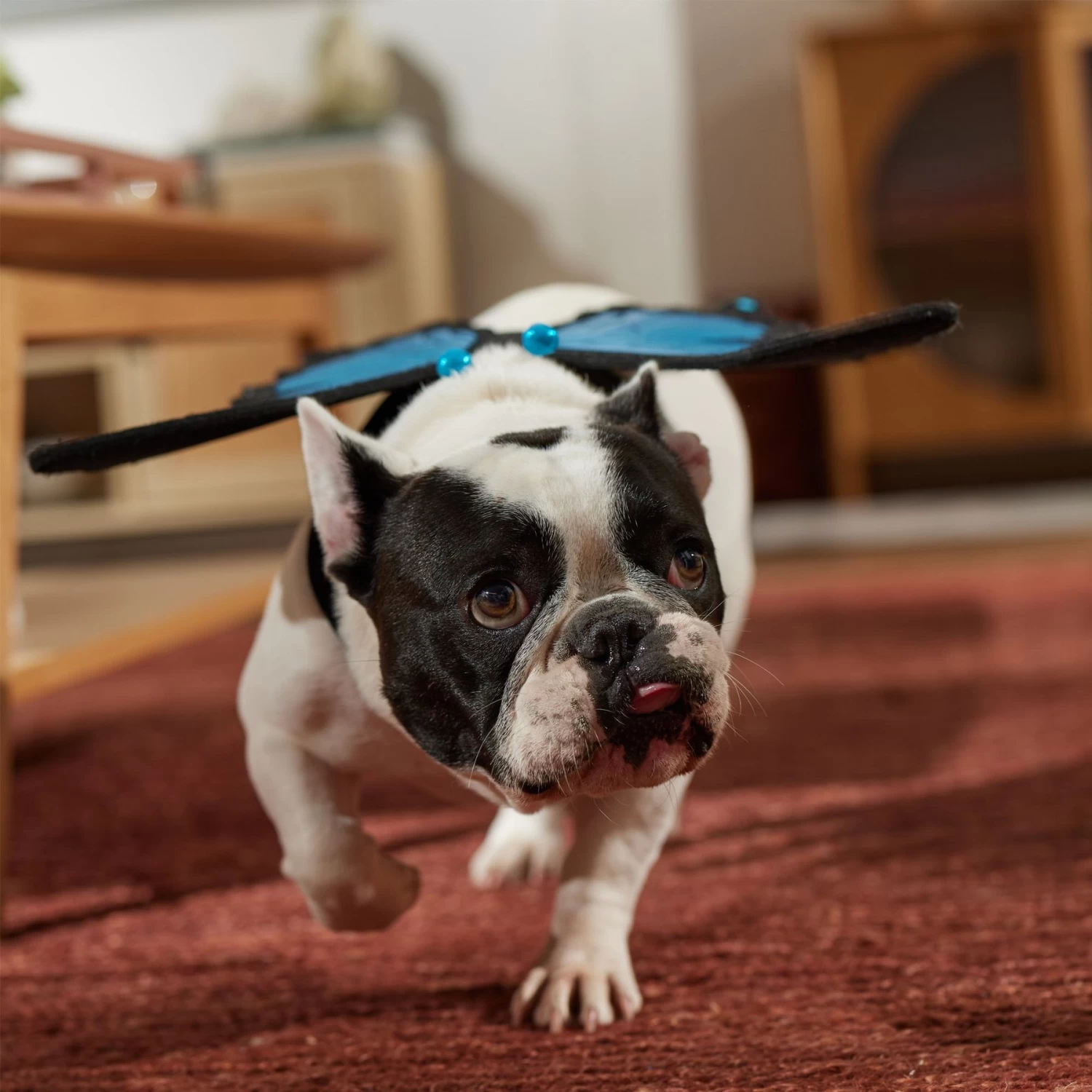 - The intricate wings feature a felt black frame with flocked texture, and iridescent polyester that produces a shiny multicolor effect.
