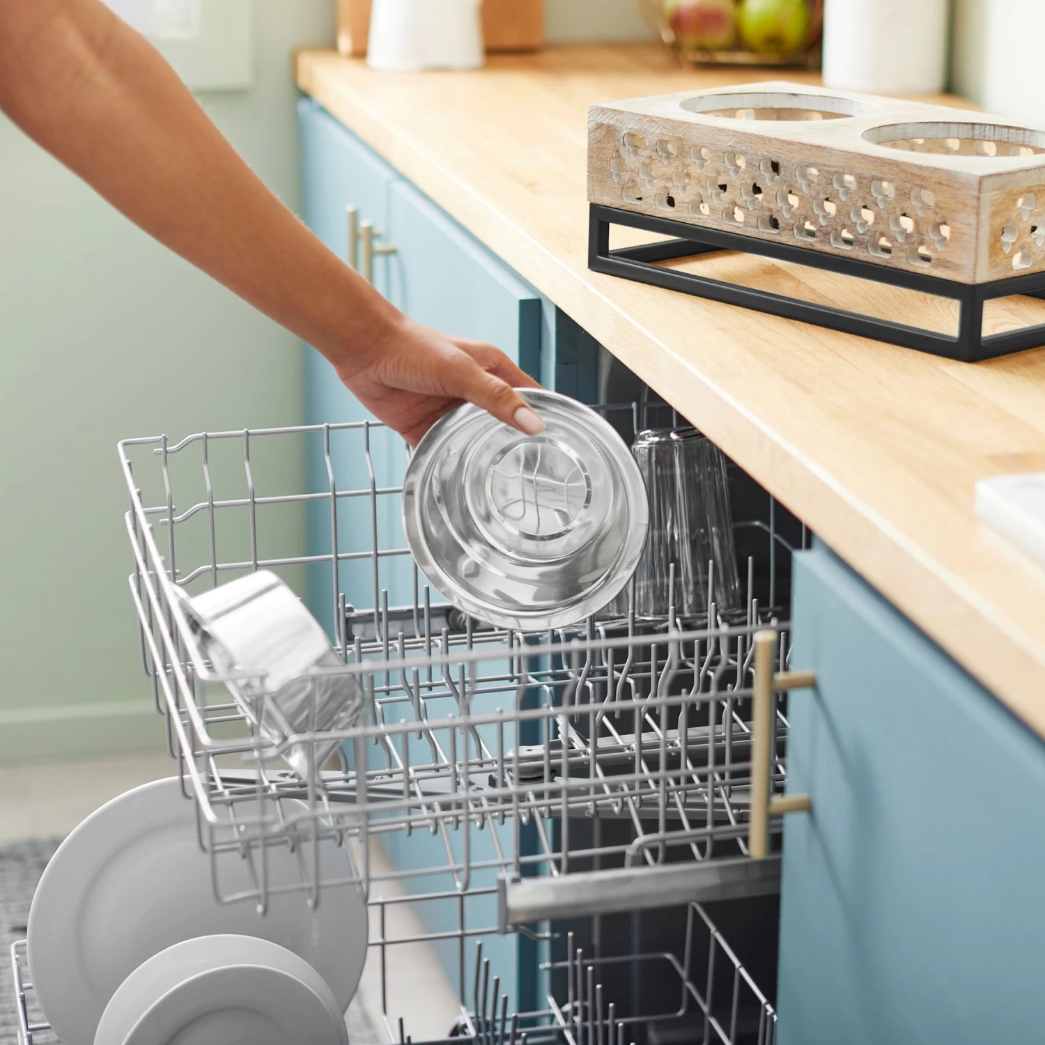 - Removeable stainless-steel bowls are dishwasher safe, making cleanup even easier.