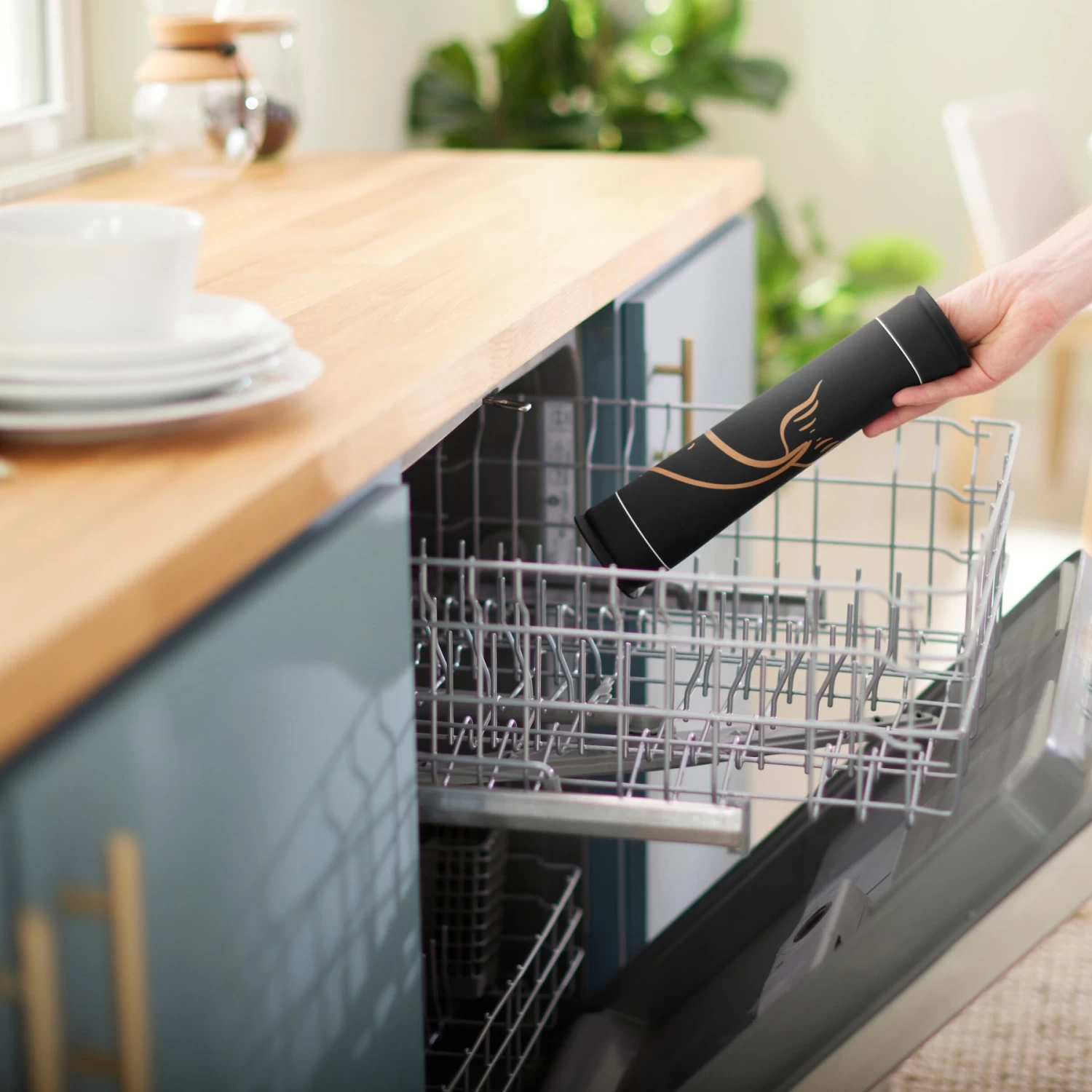 - Whenever it gets dirty, just throw it in the dishwasher’s top rack.